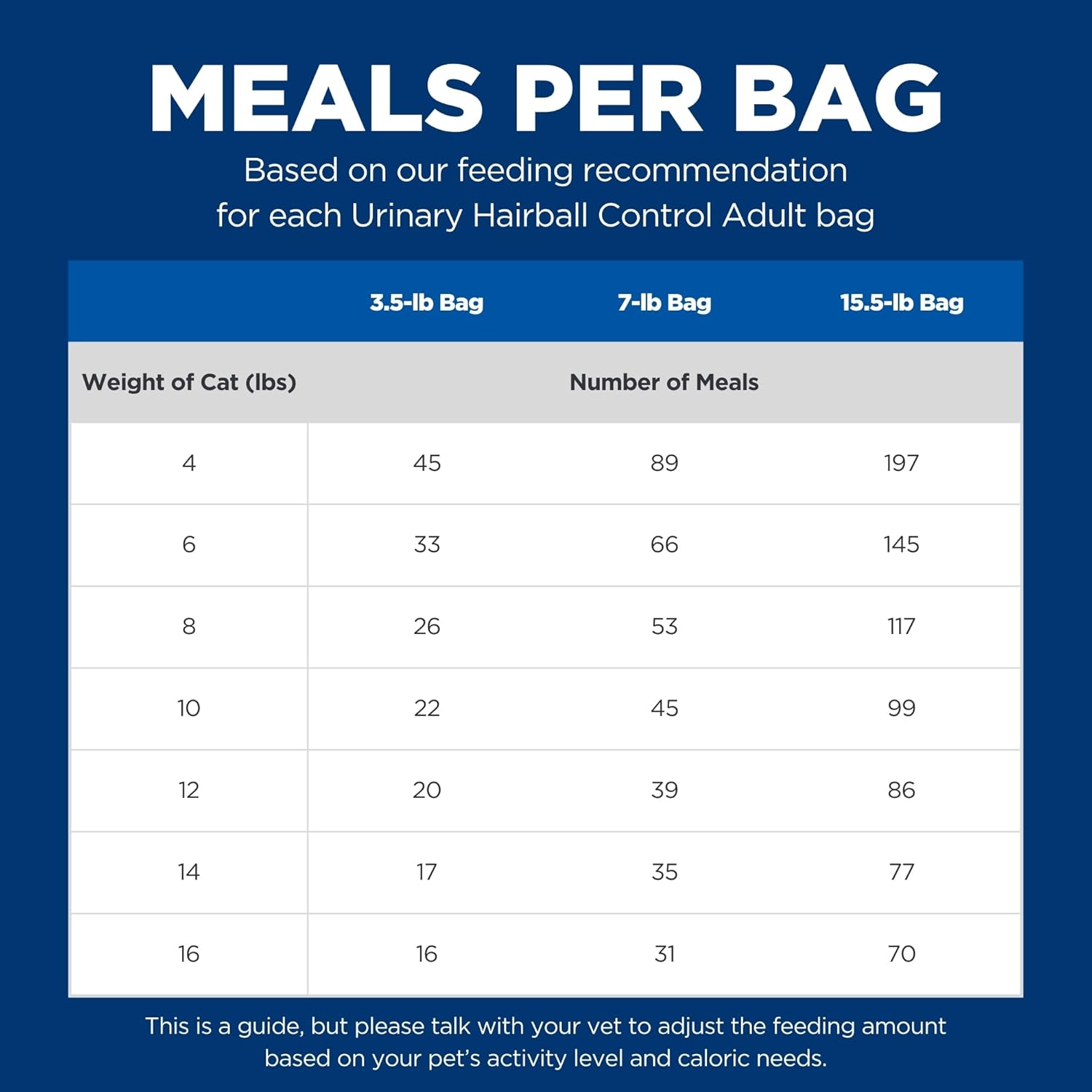 Hill's Science Diet Urinary Hairball Control, Adult 1-6, Urinary Track Health & Hairball Control Support, Dry Cat Food, Chicken Recipe, 15.5 lb Bag
